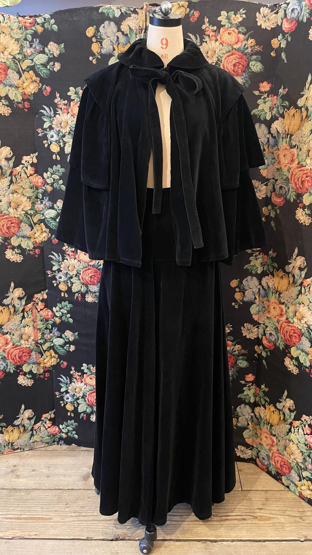Early Laura Ashley vintage black velvet cape and skirt coord two piece set